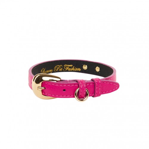 Fuchsia Pink Italian Leather Collar With Gold Oval Hardware