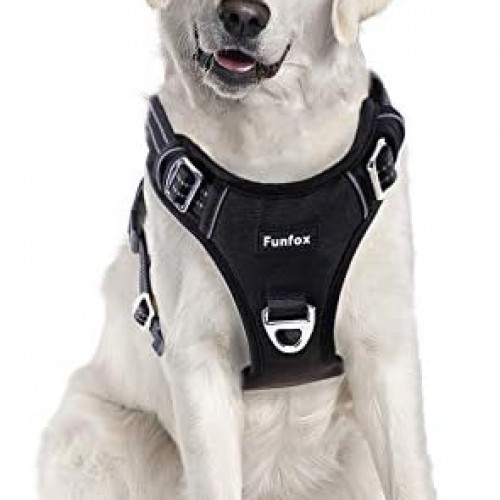 Funfox Dog Harness No Pull, Adjustable Dog Vest Harness Super Soft, 2 Leash Clips Anti Pull, Vertical Handle Easy to Control, Reflective Night Walking for Large Breed, Black, L