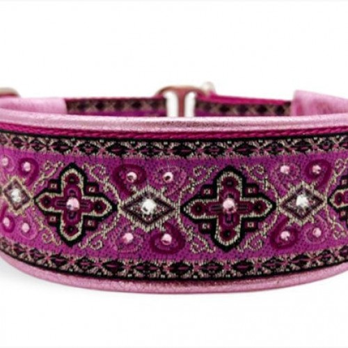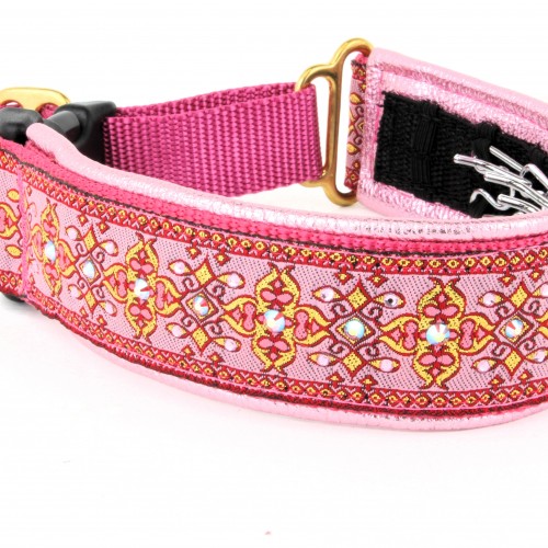 A dog wearing a FuzzyWumpets 1.5″ Wide Hidden Prong Collars w/Crystals attending a palace ball wouldn’t look out of place in this collar. This is not an everyday collar, but a piece of art for special events. The Hidden Prong Collar is backed in buttery garment-grade leather. Crystals make it royal. Spot clean as needed. These are adjustable and have a buckle- no need to slip over the dog’s head! Measure around the widest part of the head, line one in the diagram. Available in standard sizes. Machine wash, line dry.