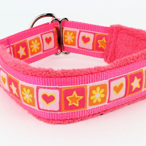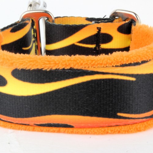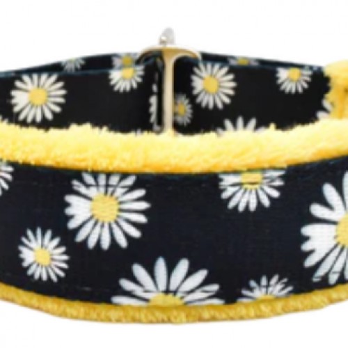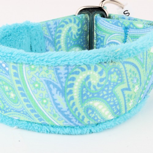 The Fuzzywumpets Everyday Collar is designed to keep your dog both safe and comfortable. Made of sturdy nylon with woven or grosgrain ribbons and cast metal hardware. The microplush fleece padding prevents chafing and allows airflow around the dog’s neck. The fleece extends 1/4″ past the collar edge. These are semi-adjustable and have to slip over the dog’s head. Measure around the widest part of the head, line one in the diagram. Available in standard sizes. Machine wash, line dry.