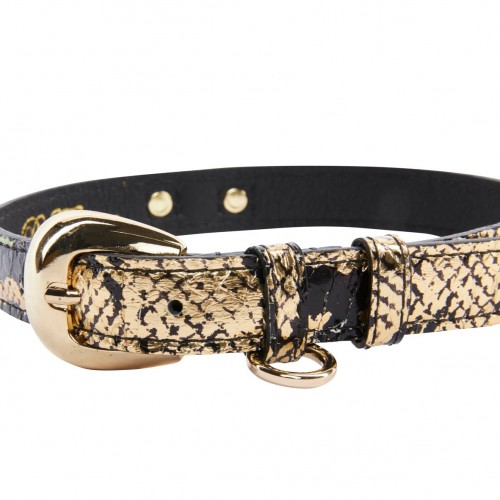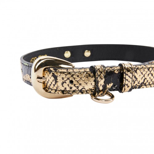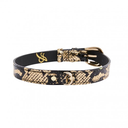 Be the first to review “Gold & Black Snake Collar With Oval Gold Hardware” Cancel reply