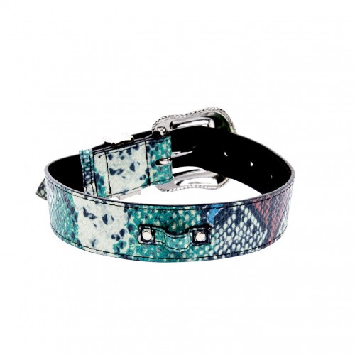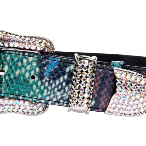 Be the first to review “Green, Blue, Black, Red Embossed Snake Italian Leather Collar With Silver Swarovski Hardware” Cancel reply