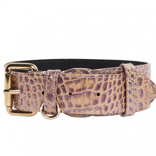 Pink, Purple & Silver Embossed Croc Italian Leather/Classic Collar