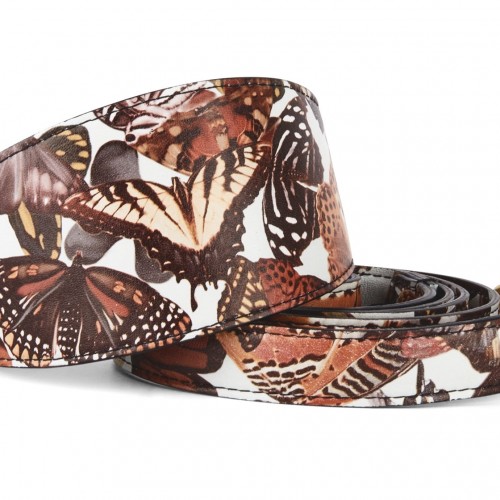 Butterfly Print Italian Leather 3 Wide Style Collar & Matching Leash Set