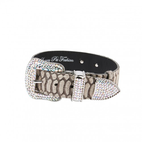 Grey Snake Print Hair On Hide Italian Leather Collar With Swarovski Crystal Hardware