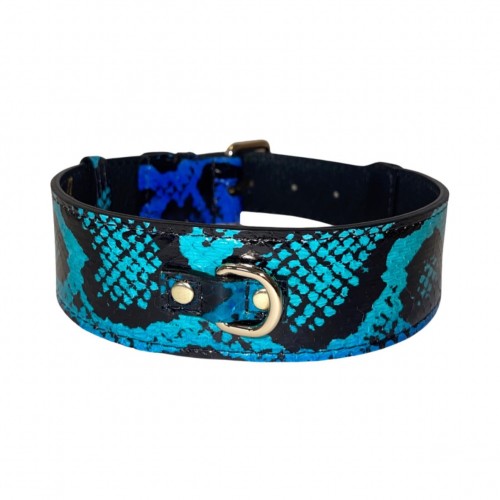 Electric/Turquoise Blue & Black Snake Classic Collar With Gold Classic Hardware