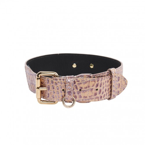 Pink, Purple & Silver Embossed Croc Italian Leather/Classic Collar