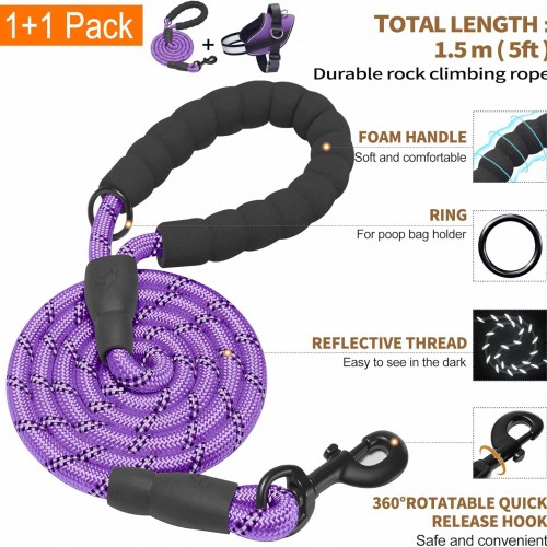 - 【Bonus Dog Leash】: A free 5ft dog leash is included. Featured with comfortable foam handle, strong climbing rope, and tangle-free hook