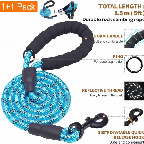 - 【Bonus Dog Leash】: A free 5ft dog leash is included. Featured with comfortable foam handle, strong climbing rope, and tangle-free hook