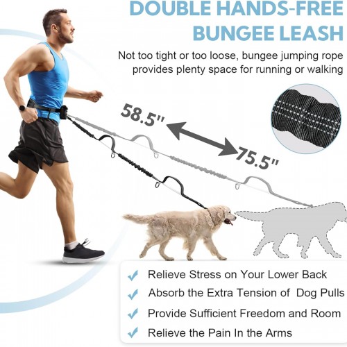 - Bungee Dog Leash : Designed specifically for lively and active dogs, This dog leash for large dogs unique two – section bungee structure absorb effectively the pulling from your pet! Original length of the bungee is 55 inches and the stretch length is 69 inches. Plenty of freedom for your dog to explore, while still keeping him close to you. Reinforced clasps of the dog leashes can better strengthen the connection between you and furry friend, make your walk safely and leisurely! It is a game changer from dog running leash hands free if you have a pup that pulls