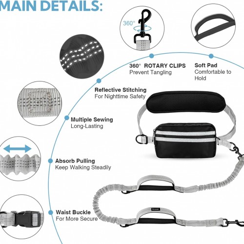 Hands Free Dog Leash with Pouch, Double Leash for Two Dogs, Retractable Bungee with Double Padded Handles, Dog Waist Leash for Dog Walking, Running Leash for Dogs, Dog Walking Accessories
