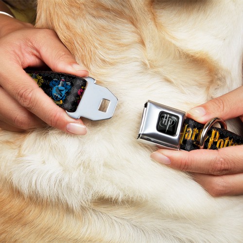 Harry Potter Logo Full Color Black/White Seatbelt Buckle Collar – HARRY POTTER Hufflepuff/Ravenclaw/Gryffindor/Slytherin Coat of Arms Black