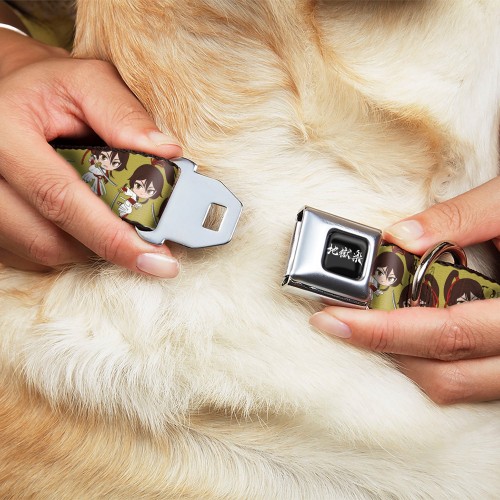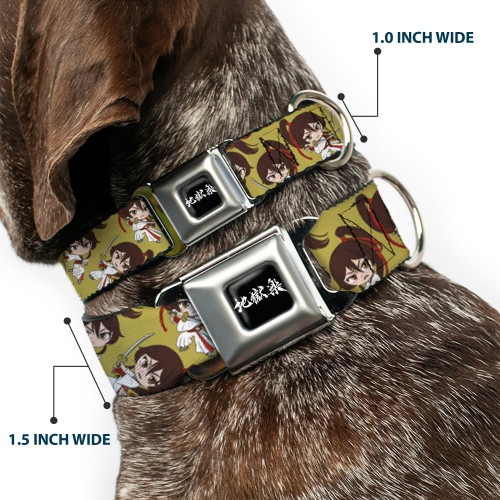 Hell’s Paradise Kanji Title Logo Full Color Black/White Seatbelt Buckle Collar – Hell’s Paradise Chibi Sagiri Sword Poses Scattered Golden Yellow