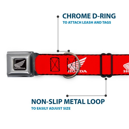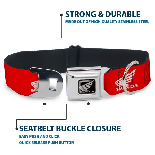 Your dog will be the talk of the town when people notice they’re wearing this awesome SeatBelt Dog Collar! Made from high-density polyester and durable steel components, this collar is built to last. It features beautiful vibrant artwork. The buckle is a miniature authentic SeatBelt Buckle, so you press the center button to release the clasp. This product is Made in USA by Buckle-Down Inc. and officially licensed by Honda Motorsports.