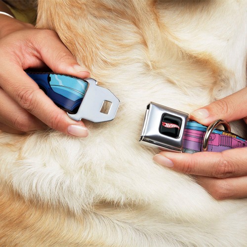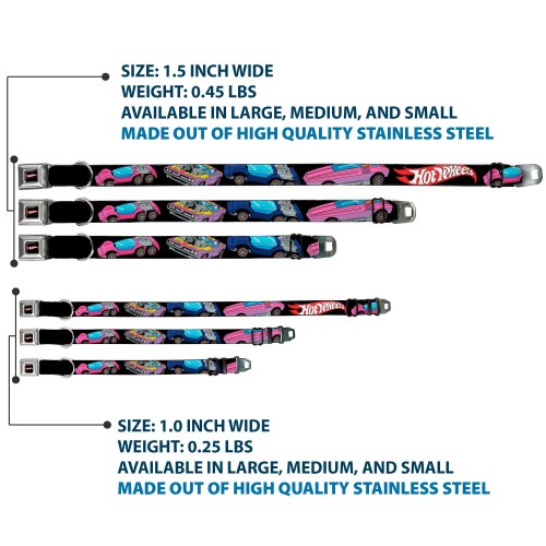 HOT WHEELS Classic Flame Logo Full Color Black/Red/White Seatbelt Buckle Collar – HOT WHEELS Logo and Four Cars Close-Up Black