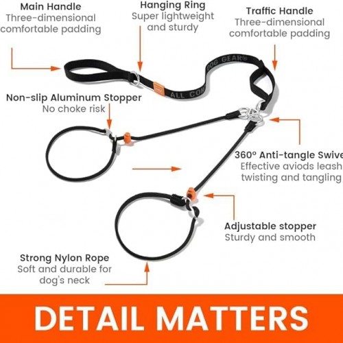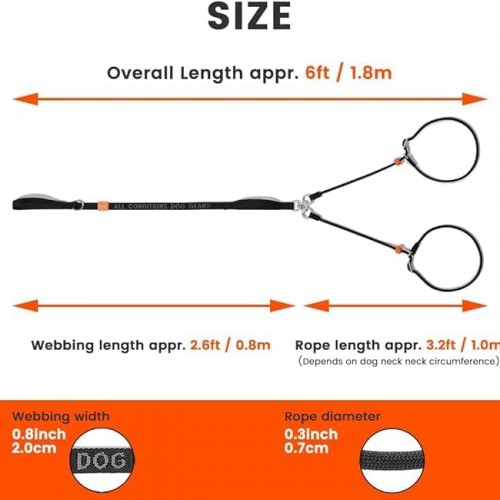 Howgo Double Slip Leash Slip Lead with Two Handles| Dual Dog Slip Lead for 2 Dogs,360° Swivel No Tangle | Dog Training Collar | Double Clip Leash Coupler and Splitter (Red, 6FT)