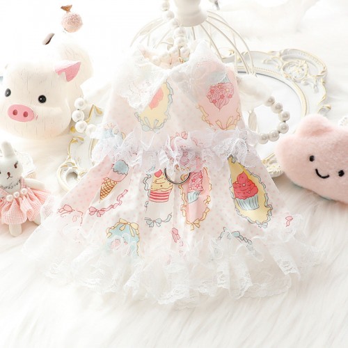 Ice Cream Lace Dog Cat Harness Dress
