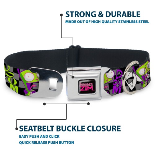 INVADER ZIM Title Logo Full Color Pink/Green Seatbelt Buckle Collar – Invader Zim GIR DOOM Pose Checker Black/Gray