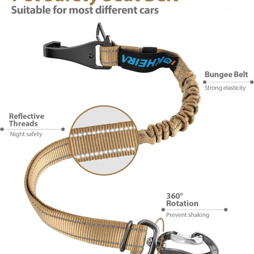 IOKHEIRA Dog Seatbelt, Adjustable, Reflective, Bungee Buffer, Large/Medium/Small, 900lbs, for Dogs