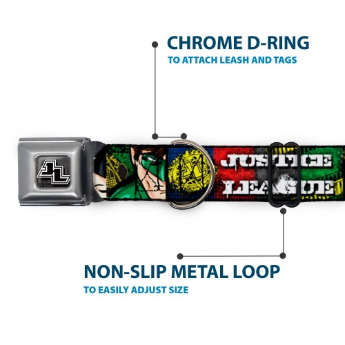 JL Logo Full Color Grays Black White Seatbelt Buckle Collar – JUSTICE LEAGUE Logo/4-Superhero Panels Pop Art