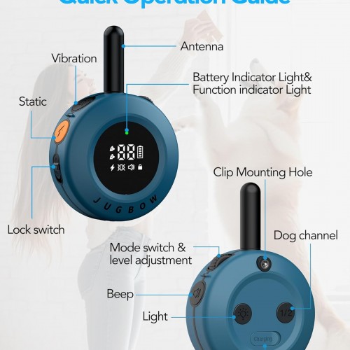 - 【Incredible Battery Life & Quick Charging】No worries about replacing the batteries. This electric dog collar can be charged using 2-in-1 Type C within 2 hours & the collar holds a charge for up to 35 days of standby time and the remote 45 days!