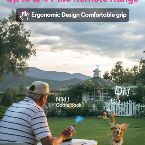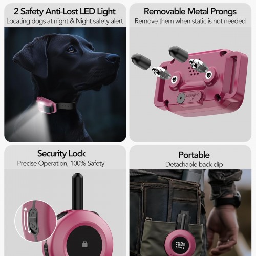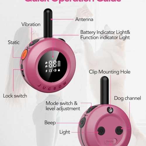 Jugbow Dog Training Collar – 3/4 Mile Remote Dog Shock Collar with 3 Training Modes, Electric Collars with LED Light & Security Lock, IPX8 Waterproof Rechargeable E-Collar for Large Medium Dogs (Pink)