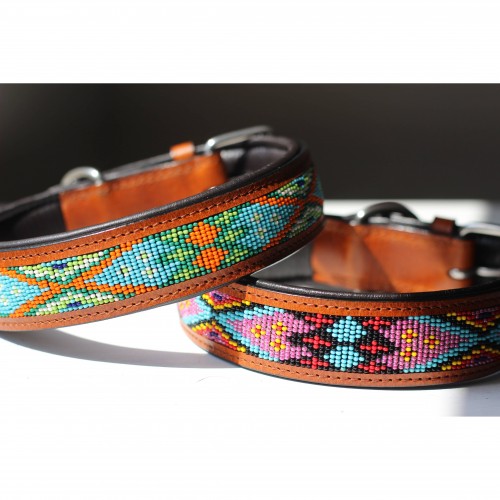 The AMIR – the “brother” of AMERA 🙂 from our Beads collection is a beautiful brown leather collar with handmade lining with black nappa, finished with colored beads in our own design. It is also fully padded and super comfortable. Fits any dog. The AMIR is really one-of-a-kind. Your dog will look so cool