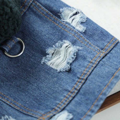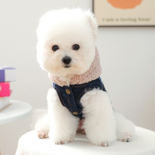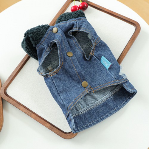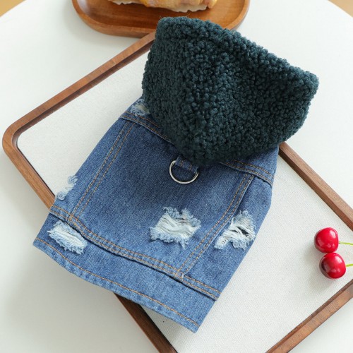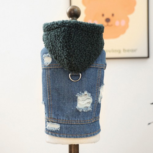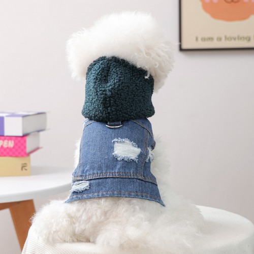 Knitted Hooded Denim Dog Cat Jacket
