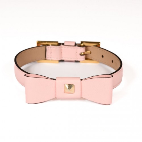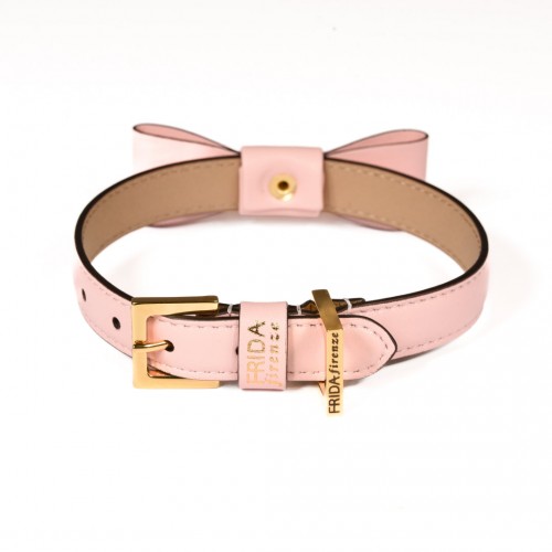Leather Dog Collar in Pink – Rock Bow, Made in Italy