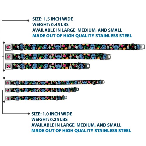 Lilo & Stitch Hibiscus Flower Full Color Black/Pink Seatbelt Buckle Collar – Stitch & Scrump Poses/Tropical Flora