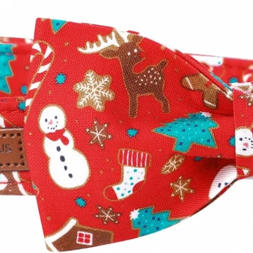 Lionet Paws Christmas Dog Collar with Bowtie, Dog Bowtie Collar with Metal Buckle for Dogs and Cats, Adjustable Comfortable Dog Collar Girl Boy Gift,XXS, Neck 7-11 in