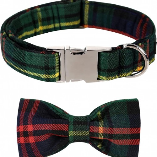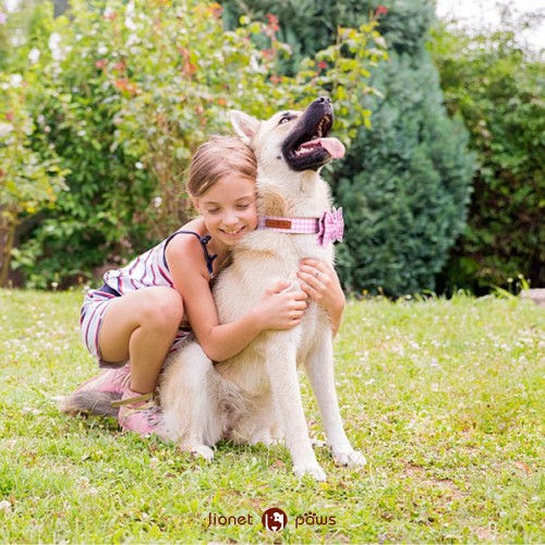 Lionet Paws Dog Collar with Bowtie, Comfortable Adjustable Cute Pink Gingham Bow Tie Collar for Female Dogs Gift, XLarge, Neck 16-26 inches