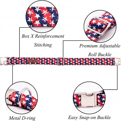 - Superior Material – The products are made of cotton fabric which is thick and durable. The buckles are made of alloy. This buckle is easy to put on and take off. Metal D-ring can attach the leash and ID tag.