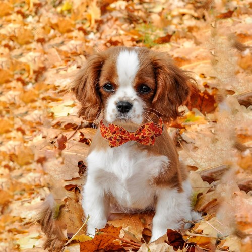 Lionet Paws Dog Collar with Bowtie – Cute Cotton Adjustable Fall Bowtie Dog Collar with Metal Buckle for Small Medium Large Dog Girl Boy Gift, XL, Neck 16-26in