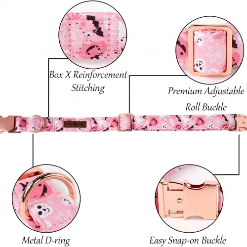 Lionet Paws Halloween Dog Collar, Cute Fall Pink Dog Collar for Large Dogs, Adjustable Cotton Pumpkin Ghost Pet Collars for Medium Large Dogs