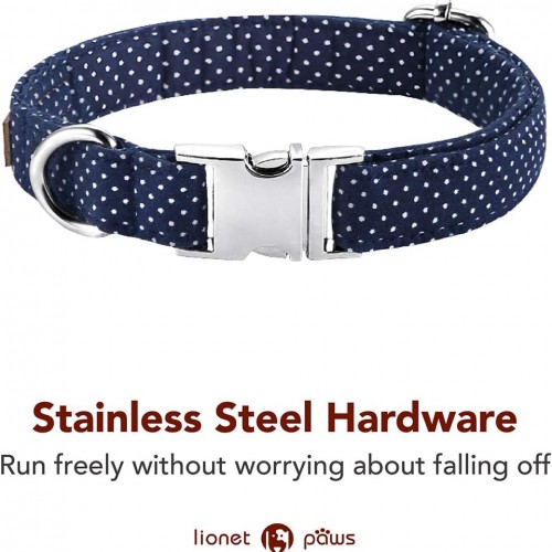 - Superior Material – The products are made of cotton fabric which is thick and durable. The buckles are made of alloy. This buckle is easy to put on and take off. Metal D-ring can attach the leash and ID tag.