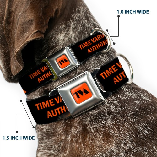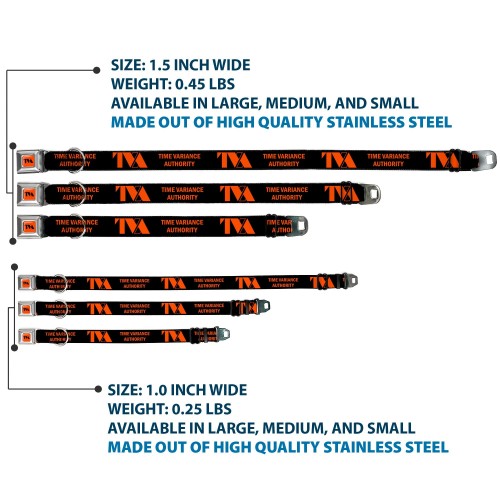 Loki Series TVA Time Variance Authority Logo Full Color Orange/Black Seatbelt Buckle Collar – Loki Series TVA TIME VARIANCE AUTHORITY Text Black/Orange
