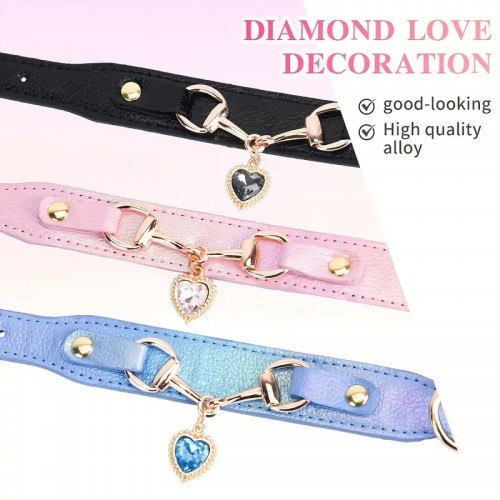 Sparkle and shine with our Love Heart Bling Charm Blue Iridescent Leather Pet Collar! This eye-catching collar features a charming love heart design in a mesmerizing blue iridescent finish. Your furry companion will be the talk of the town while staying safely adorned in style. (Pawsitively perfect for any pet!)