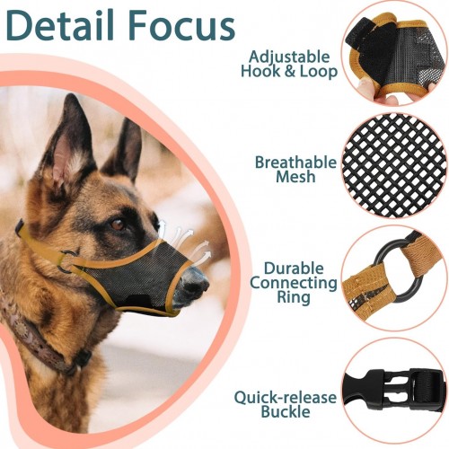 LUCKYPAW Dog Muzzle, Mesh Muzzle for Large Medium Small Dogs, Soft Mouth Guard for Biting Chewing, Breathable Mouth Guard with Adjustable Strap for Training(Brown, XL(Snout:11″-12.25″))