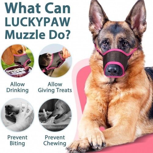 LUCKYPAW Dog Muzzle, Mesh Muzzle for Large Medium Small Dogs, Soft Mouth Guard for Biting Chewing, Breathable Mouth Guard with Adjustable Strap for Training(Hot Pink, S(Snout:7.75″-8.75″))