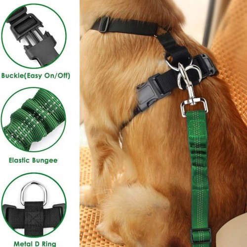 Lukovee Dog Seat Belt – Adjustable Dog Car Harness for Large, Medium & Small Dogs, Soft Padded & Breathable Mesh Dog Seatbelt with Vehicle Connector Strap (Green, Small)
