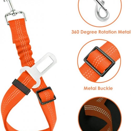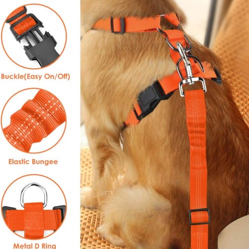 - 【Safe & Secure】— (1). Breathable Mesh Chest Vest Harness: Our harness wraps around your pet’s body and neck, providing a secure fit that prevents them from roaming the car or hopping into the front seat. It’s a great alternative to a collar. (2). Elastic Safety Dog Seatbelt: it’s made from durable nylon strap to protect the dog which is elastic and adjustable and it is long enough to let your pet move around in the back seat and lay down.