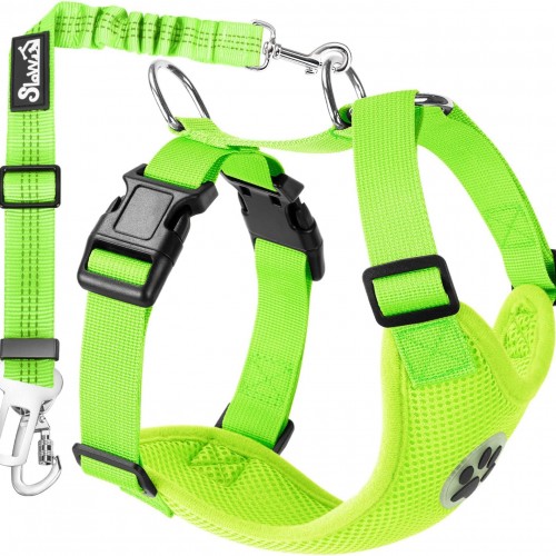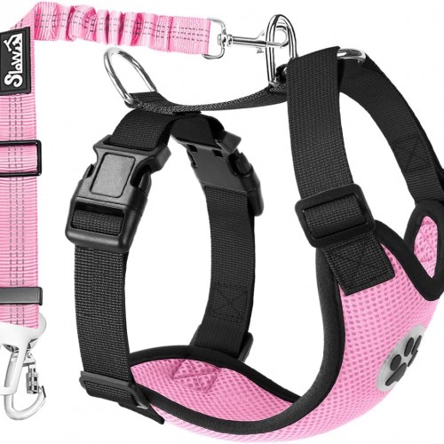 - 【Adjustable & Easy to Use】 — The harness is easy to put on with two buckles on the chest part, and the four adjust buttons on the harness strap make it easy to adjust for a comfortable fit for small, medium, and large dogs. The breathable mesh chest vest harness is adjustable to relieve pressure and fit your pet perfectly. The seat belt is also adjustable and easy to hook up in the car or trunk.