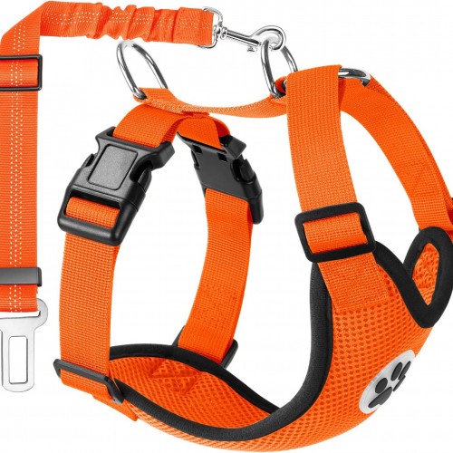 - 【Adjustable & Easy to Use】 — The harness is easy to put on with two buckles on the chest part, and the four adjust buttons on the harness strap make it easy to adjust for a comfortable fit for small, medium, and large dogs. The breathable mesh chest vest harness is adjustable to relieve pressure and fit your pet perfectly. The seat belt is also adjustable and easy to hook up in the car or trunk.