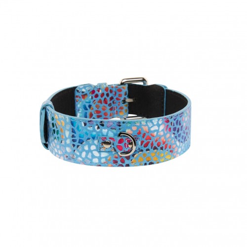 Luxury Pet Fashion Blue Floral Mosaic Italian Leather Collar