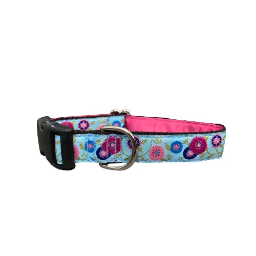 Mackenzie’s dog collars and leashes are made of durable materials, hand-stitched for quality. Each collar also comes with a complementary inner satin lining.