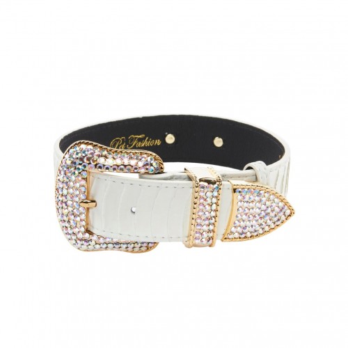 Matte White Snake Collar With Gold Swarovski Crystal Hardware Collar