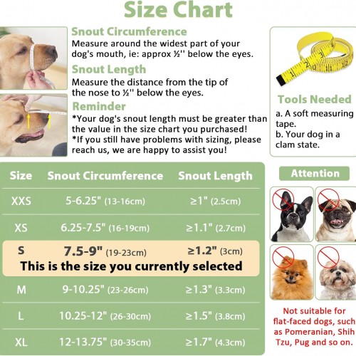 Mayerzon Dog Muzzle with Hook and Loop for Large Medium Small Dogs, Patented Soft Mesh Beagle Labrador Puppy Muzzles for Biting Chewing Grooming, Breathable, Adjustable, Allows Panting (Black, S)