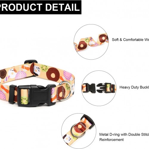 Mercano Adjustable Dog Collar – Special Design Patterns, Soft Nylon Comfortable Durable Pet Collar for Small Medium Large Dogs (M, Beige Cookie)