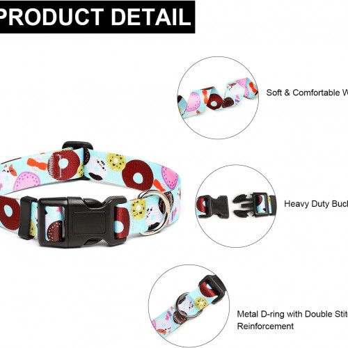 Mercano Adjustable Dog Collar – Special Design Patterns, Soft Nylon Comfortable Durable Pet Collar for Small Medium Large Dogs (S, Blue Cookie)